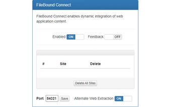 FileBound Connect ให้วิธีการเชื่อมต่อ FileBound กับเนื้อหาเว็บอย่างตรงไปตรงมาและมีประสิทธิภาพ เพิ่มประสบการณ์ผู้ใช้โดยรวมและผลิตภาพการทำงาน มันเป็นเครื่องมือที่สำคัญสำหรับผู้ที่พึ่งพากับระบบอัตโนมัติของเอกสารและการทำงานของ FileBound ในการดำเนินงานประจำวันของพวกเขา
